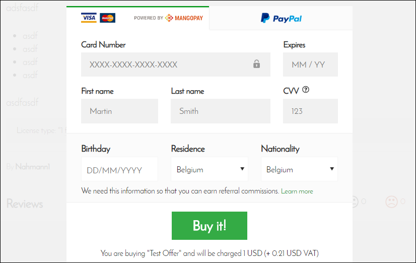Quick purchase lightbox with background core